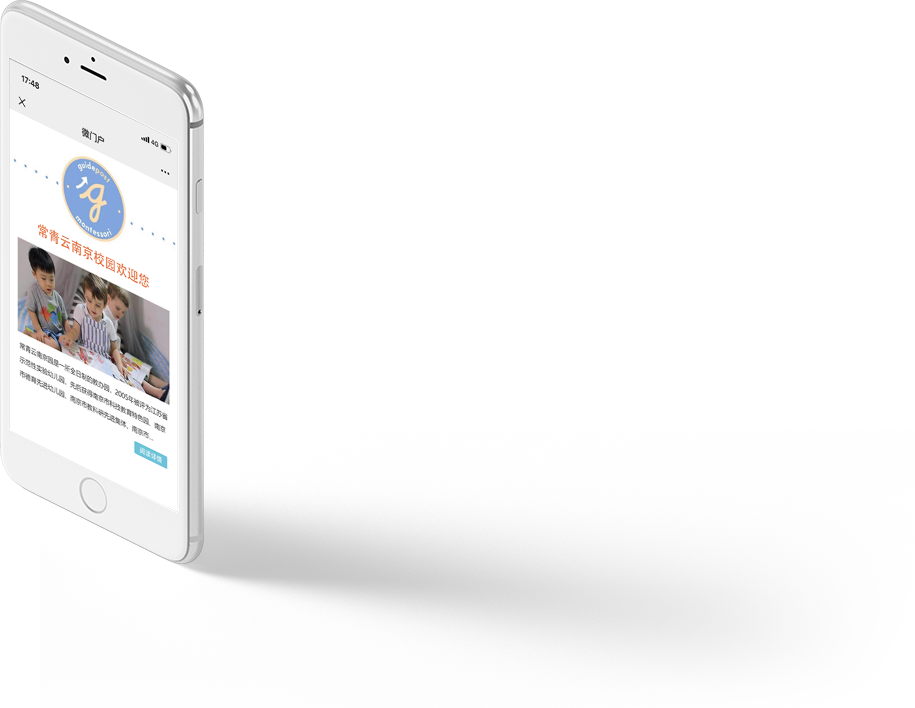 在微门户上潜在客户可以了解学校的概况、办园理念、教师风采、园长寄语以及园所最新的活动和新闻动态等,是幼儿园向潜在家长展示的一个窗口。如果家长有意向更深了解,可以通过预约参观或入园申请提交信息,这些信息会自动同步到后台系统,并推送通知给相关老师。